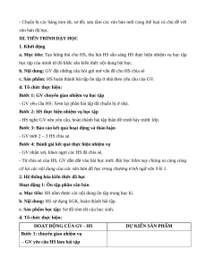 III. TIẾN TRÌNH DẠY HỌC 1. Khởi động