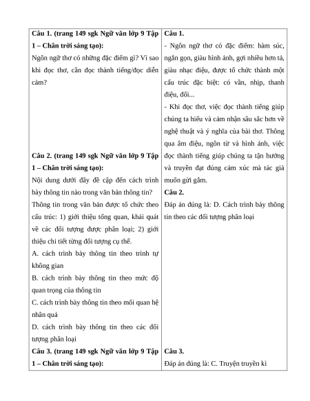 Câu 1. (trang 149 sgk Ngữ văn lớp 9 Tập Câu 1.