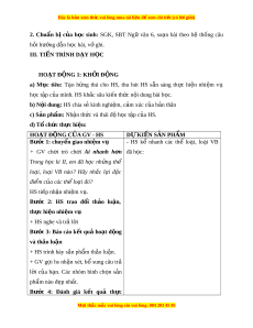 III. TIẾN TRÌNH DẠY H C Ọ HOẠT Đ N Ộ G 1: KH I Ở Đ N Ộ G a) M c ụ tiêu: T o ạ h ng