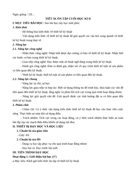 GV: Để ôn tập lại kiến thức về thiết kế kỹ thuật thì chúng ta vào bài hôm nay.