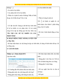 - HS thực hiện được các nội dung ôn tập các kiến thức, kĩ năng về kiến thức đã học: Số và Phép tính. b. Cách tiến hành: