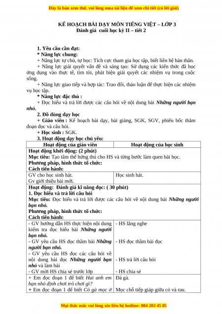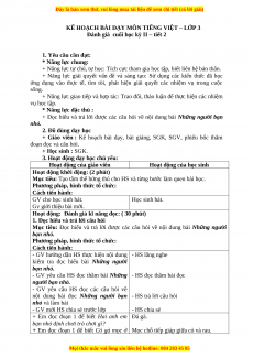 KẾ HOẠCH BÀI DẠY MÔN TIẾNG VIỆT – LỚP 3