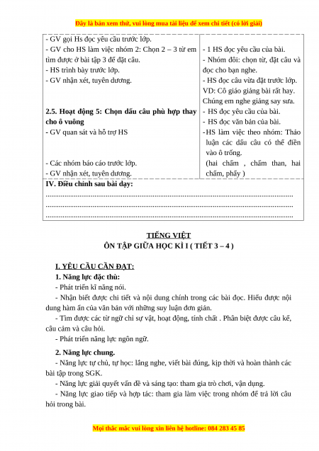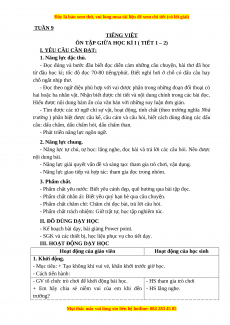 ÔN TẬP GIỮA HỌC KÌ I ( TIẾT 3 – 4 ) I. YÊU CẦU CẦN ĐẠT: 1. Năng lực đặc thù: