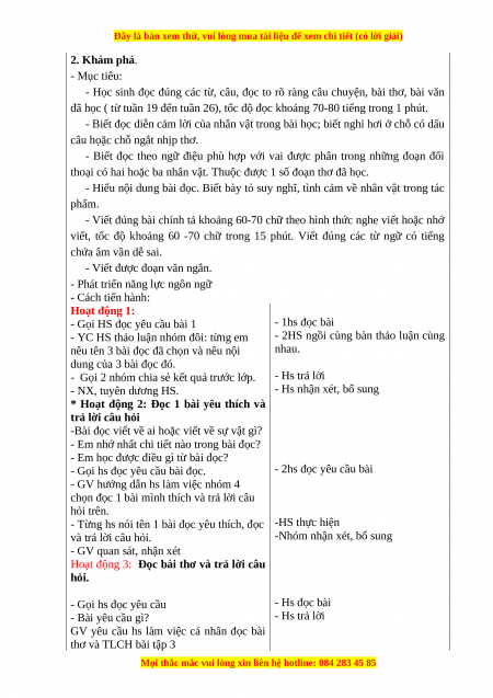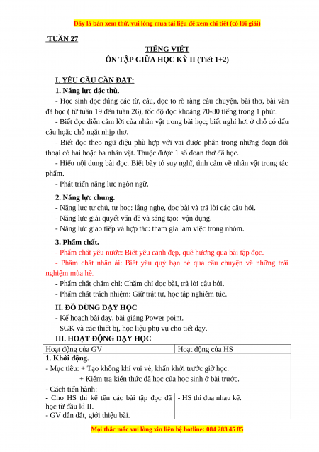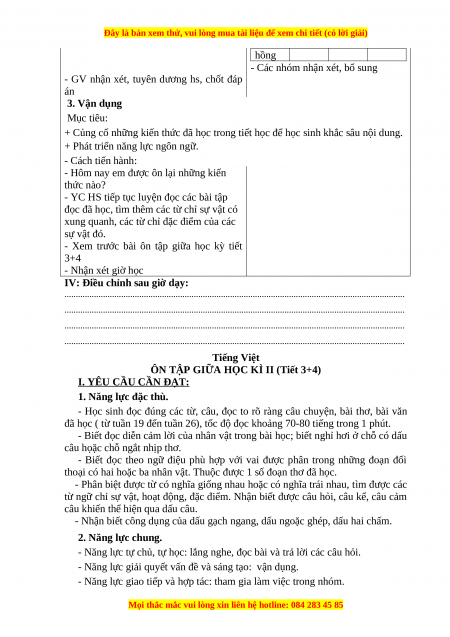Giáo án Ôn tập giữa học kỳ II (T1+2) Tiếng việt 3 Kết nối tri thức