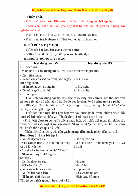 - Phẩm chất yêu nước: Biết yêu cảnh đẹp, quê hương qua bài tập đọc.