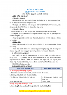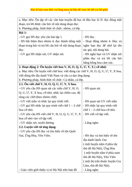 - Ôn luyện viết chữ hoa: viết đúng các chữ V, H, O, Q, U, Ư, Y, X hoa, viết