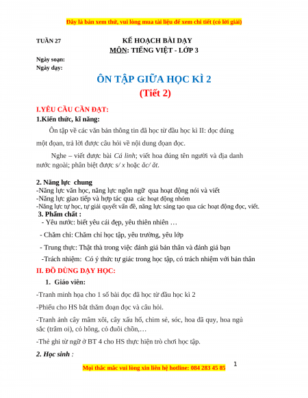 TUẦN 27 KẾ HOẠCH BÀI DẠY