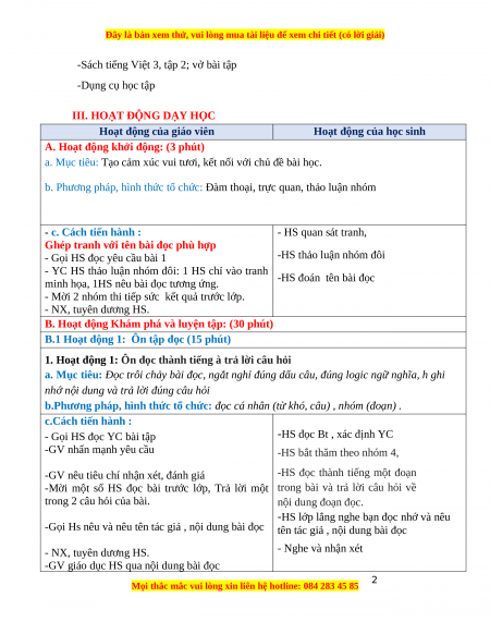 b.Phương pháp, hình thức tổ chức: đọc cá nhân (từ khó, câu) , nhóm (đoạn) .