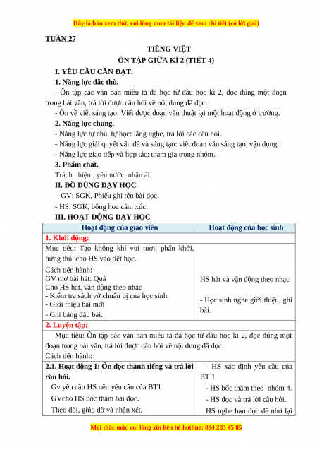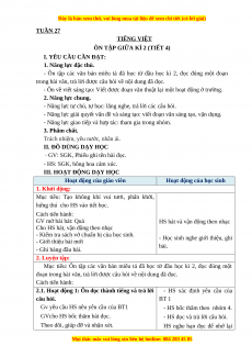 Giáo án Ôn tập giữa học kỳ II (Tiết 4) Tiếng việt 3 Chân trời sáng tạo