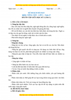BÀI ÔN TẬP GIỮA HỌC KỲ 2 (Tiết 5 ) I. YÊU CẦU CẦN ĐẠT: 1. Năng lực đặc thù.