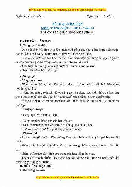 MÔN: TIẾNG VIỆT - LỚP 3 – Tuần 27