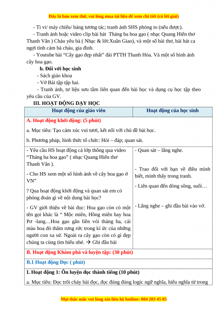 - Tranh ảnh hoặc video clip bài hát Tháng ba hoa gạo ( nhạc Quang Hiển thơ