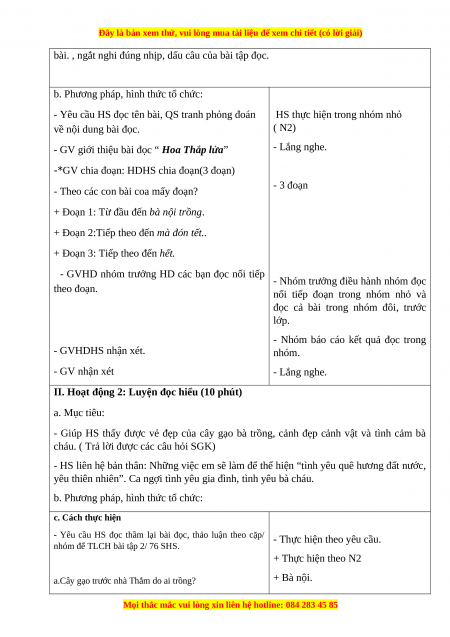 II. Hoạt động 2: Luyện đọc hiểu (10 phút) a. Mục tiêu: