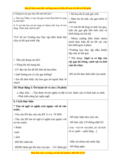 - Giúp HS thấy được vẻ đẹp của cây gạo bà trồng, cảnh đẹp cảnh vật và tình cảm bà