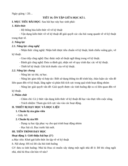 - Năng lực giải quyết vấn đề: Giải quyết được các tình huống đặt ra có liên quan đến vẽ kỹ thuật. 3. Phẩm chất