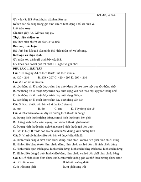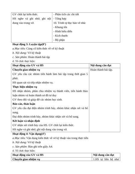 - Giao tiếp công nghệ: Đọc được một số thuật ngữ dùng trong vẽ kỹ thuật.