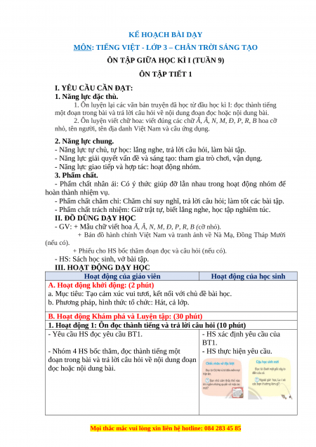 ÔN TẬP GIỮA HỌC KÌ I (TUẦN 9) ÔN TẬP TIẾT 1 I. YÊU CẦU CẦN ĐẠT: