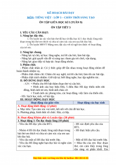 Giáo án Ôn tập giữa kì I (Tiết 3) Tiếng việt 3 Chân trời sáng tạo