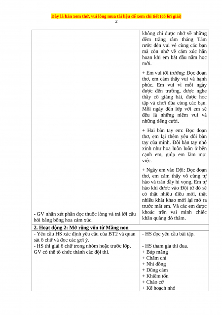 2. Ôn luyện MRVT Măng non; đặt câu với từ ngữ tìm được về hoạt động