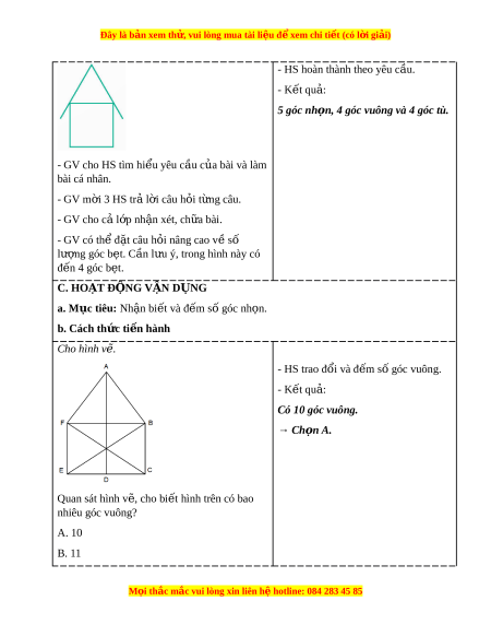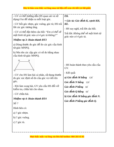 Đây là bản xem th , vu ử i lòng mua tài li u ệ đ xe ể m chi ti t (c ế ó l i ờ gi i ả ) - GV có th h ể ư ng ớ d n H ẫ S quan sát và sử EK. d ng ê ke đ ụ nh ể n ậ ra mỗi lo i ạ góc.