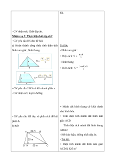 - GV yêu cầu HS đọc và phân tích đề bài + Tính diện tích mảnh đất hình tam phần b. giác ACD b) Số?