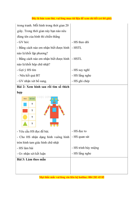 Hình thức tổ chức: Cả lớp, cá nhân Bài 1: Nhận dạng hình