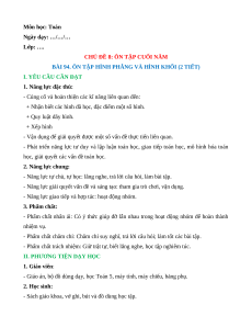 Giáo án Ôn tập hình phẳng và hình khối Toán lớp 5 Chân trời sáng tạo