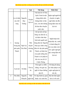 + Lập bảng so sánh đặc điểm các thể loại theo mẫu sau (làm vào vở): Thể loại