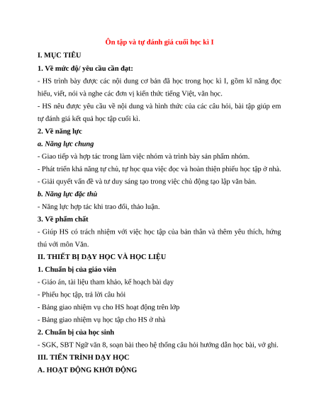 Ôn tập và tự đánh giá cuối học kì I I. MỤC TIÊU