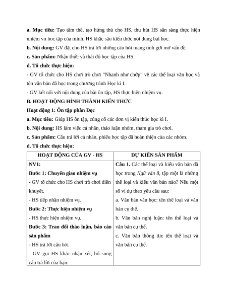 Giáo án Ôn tập học kì 1 (2024) Ngữ văn 8 Cánh diều
