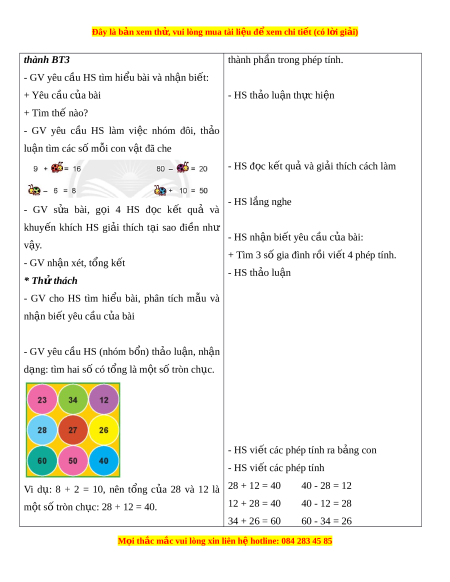ủ 28 và 12 là 28 + 12 = 40 40 - 28 = 12 m t ộ số tròn ch c: ụ 28 + 12 = 40. 12 + 28 = 40 40 - 12 = 28 34 + 26 = 60 60 - 34 = 26 M i
