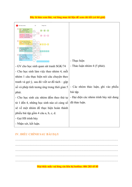 1. Giáo viên: SGK, tranh minh họa S/74, phiếu bài tập, bộ thẻ số, bộ xếp hình.