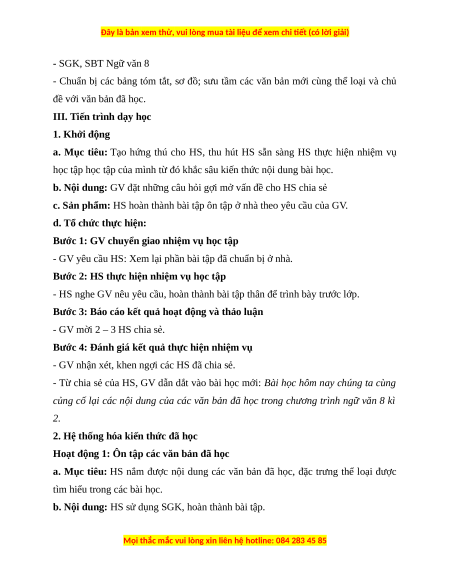 - Hệ thống hoá kiến thức đã học trong SGK Ngữ văn 8, tập hai.