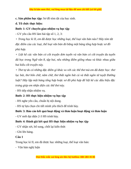 - Chuẩn bị các bảng tóm tắt, sơ đồ; sưu tầm các văn bản mới cùng thể loại và chủ