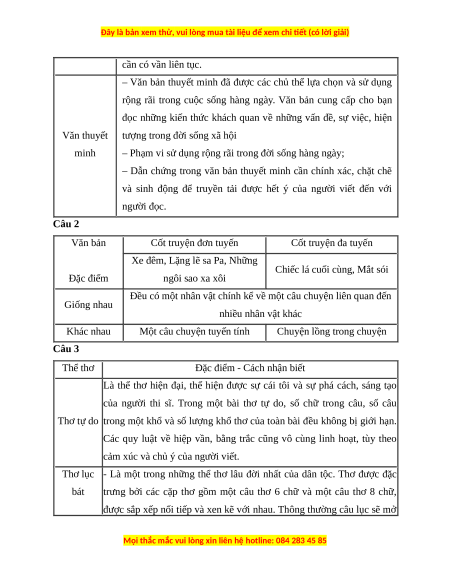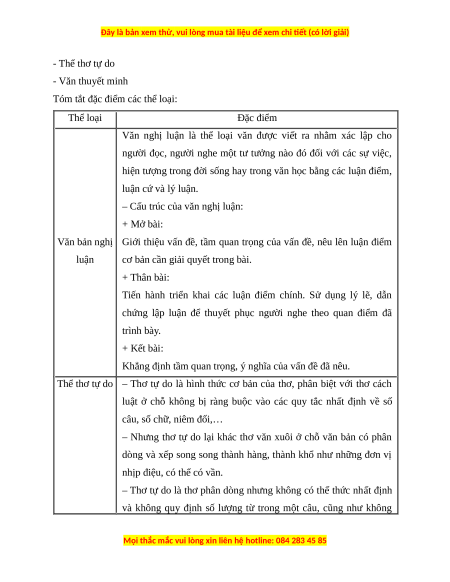 - Thể thơ tự do - Văn thuyết minh