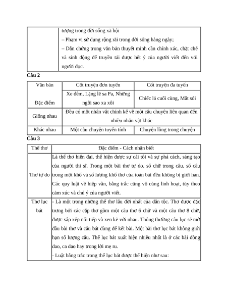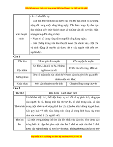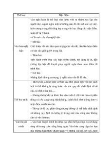 Tóm tắt đặc điểm các thể loại: Thể loại Đặc điểm