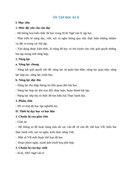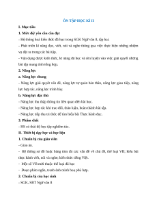 ÔN TẬP HỌC KÌ II I. Mục tiêu