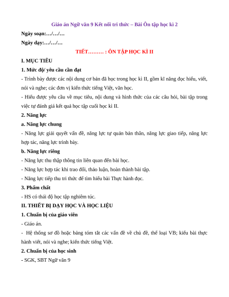Giáo án Ngữ văn 9 Kết nối tri thức – Bài Ôn tập học kì 2