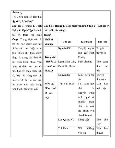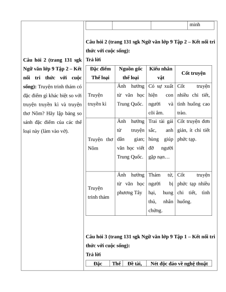 Câu hỏi 1 (trang 131 sgk Câu hỏi 1 (trang 131 sgk Ngữ văn lớp 9 Tập 2 – Kết nối tri
