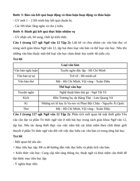Câu 1 (trang 127 sgk Ngữ văn 12 Tập 2): Liệt kê và chia nhóm các văn bản đọc có