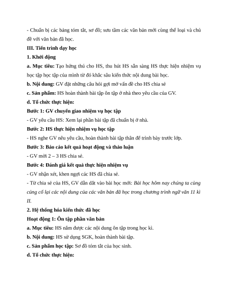 - Chuẩn bị các bảng tóm tắt, sơ đồ; sưu tầm các văn bản mới cùng thể loại và chủ