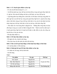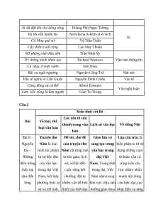 - GV nhận xét, bổ sung, chốt lại kiến thức - Ghi lên bảng. Câu 1 Tác phẩm Tác giả Thể loại Trao duyên Nguyễn Du Độc Tiểu Thanh kí Nguyễn Du Truyện thơ Nôm Chí khí anh hùng Nguyễn Du