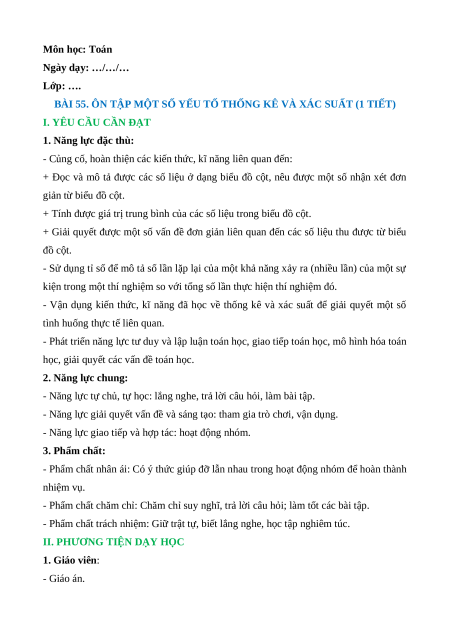 BÀI 55. ÔN TẬP MỘT SỐ YẾU TỐ THỐNG KÊ VÀ XÁC SUẤT (1 TIẾT)
