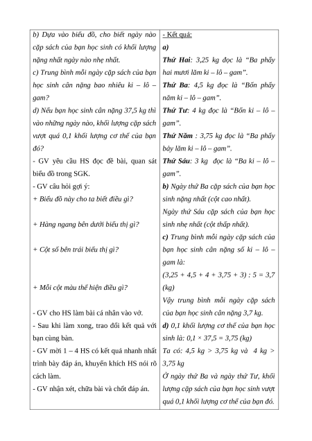 c) Trung bình mỗi ngày cặp sách của bạn hai mươi lăm ki – lô – gam”.