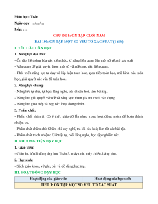 BÀI 100: ÔN TẬP MỘT SỐ YẾU TỐ XÁC SUẤT (1 tiết)