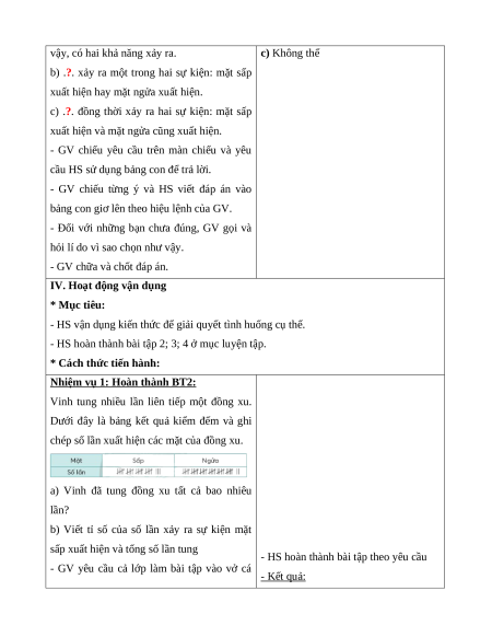 c) .?. đồng thời xảy ra hai sự kiện: mặt sấp