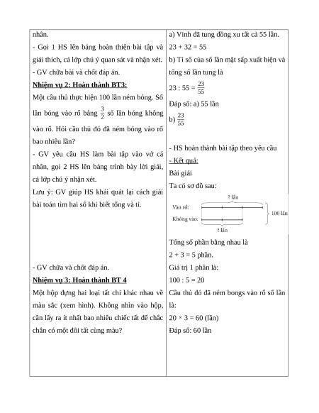 Một cầu thủ thực hiện 100 lần ném bóng. Số Đáp số: a) 55 lần 3