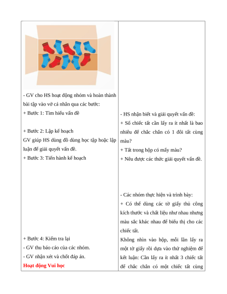 - HS vận dụng kiến thức để giải quyết tình huống cụ thể.