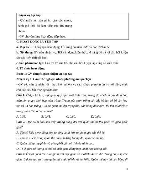 - Phiếu học tập, các câu hỏi và bài tập thuộc phần 5. Di truyền học.