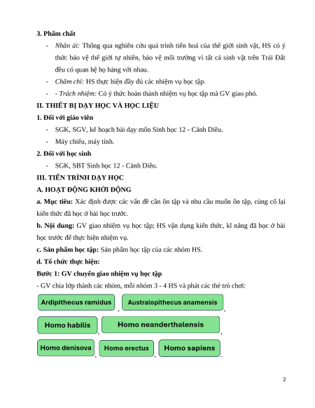 - Nhân ái: Thông qua nghiên cứu quá trình tiến hoá của thế giới sinh vật, HS có ý